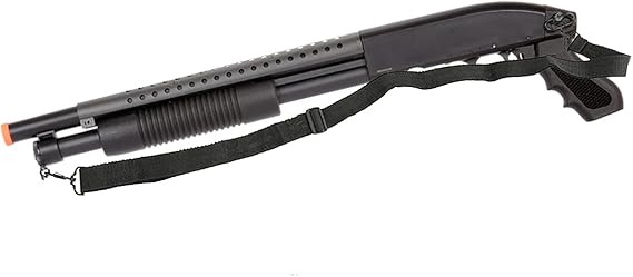 The adjustable hop-up system enhances accuracy and range, ensuring consistent performance in various combat scenarios. Constructed with a metal barrel and synthetic plastic frame, this airsoft shotgun is both durable and lightweight, weighing just 3 pounds.